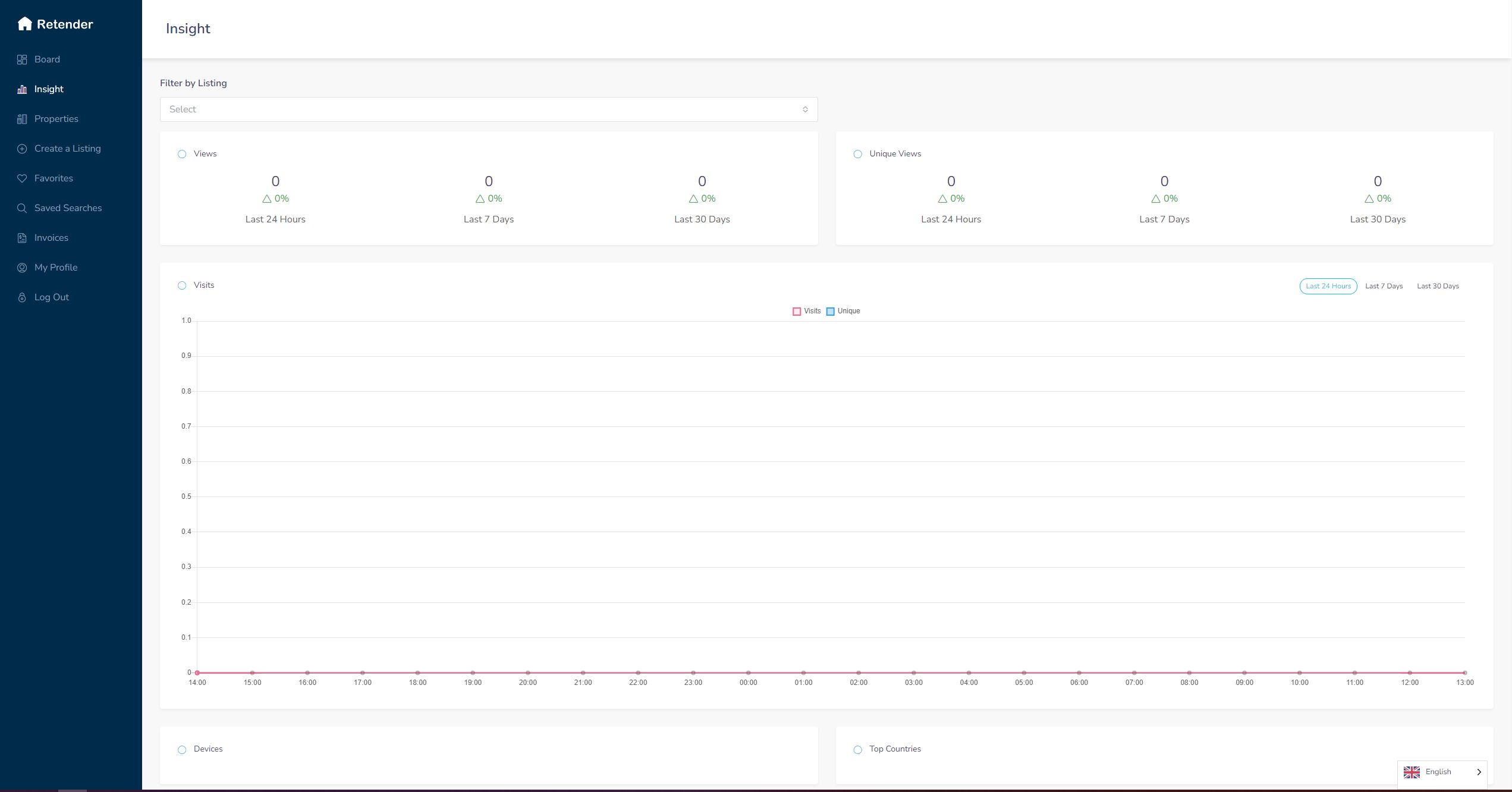 Zodra je vastgoed op Retender hebt staan zal het persoonlijke overzicht zichzelf vullen. Deze is te vinden door rechts boven op de grijze profiel knop te drukken en vervolgens te kiezen voor inzicht